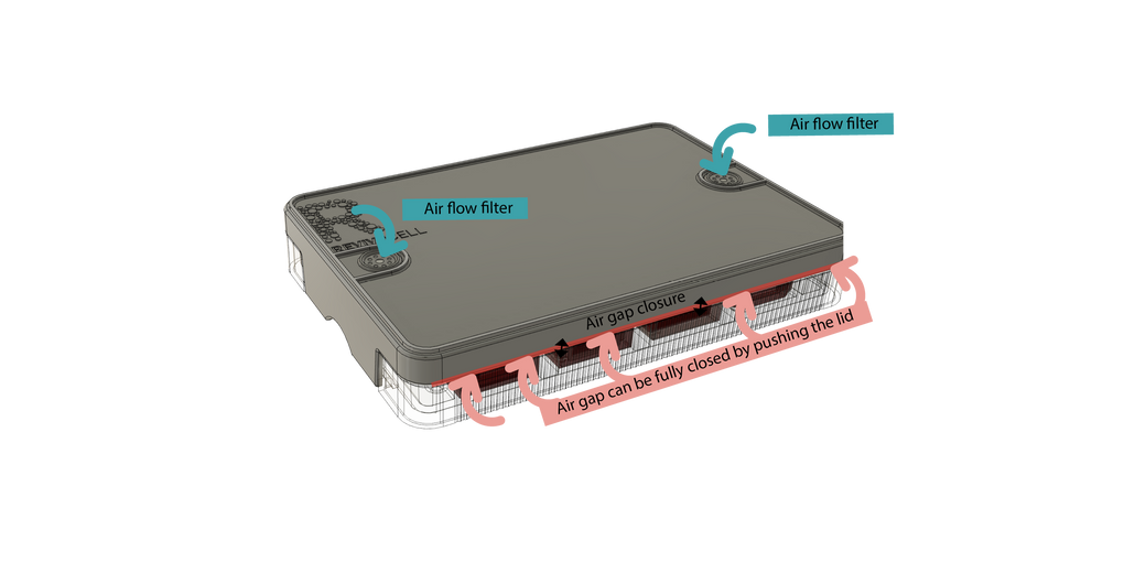 The CELLBLOKS® chamber comes with new design Clip-Closure "Air-Lid" feature with two side clips that make it easy to create 100% hermetic seal around the chamber. PTFE air filters and an o-ring seal have been incorporated in the lid in order to filter the air reaching cell cultures. Gas is in cultures is only exchanged through selectively permeable air filters (0.2 micorn) which reduce potential contamination of cells, evaporation of media, and fluctuations of pH during experimentation. In contrast to other cell culure platforms the Air-Lid technology is first-of-its-kind - enabling more reproducible data acqusitions and handling advantages.